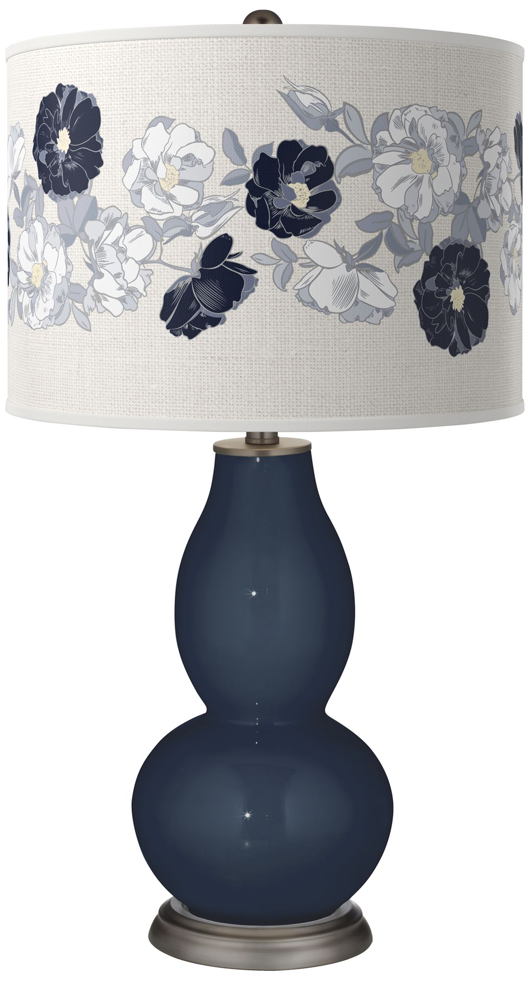 Color Plus Double Gourd 29 1/2" Rose Bouquet Naval Blue Table Lamp