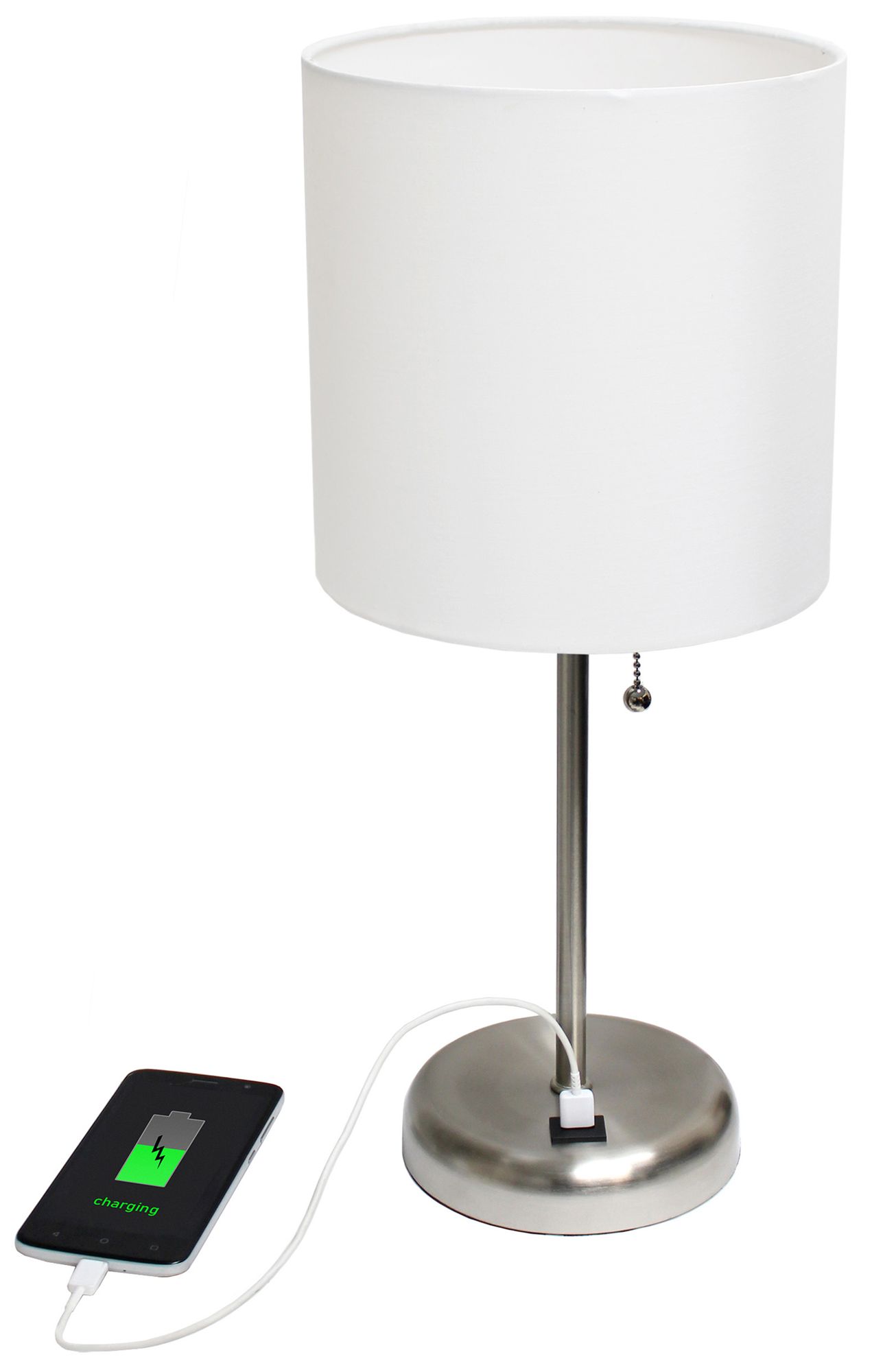 19.5" Brushed Steel Table Lamp with USB Charging Port and LED Bulb Inc