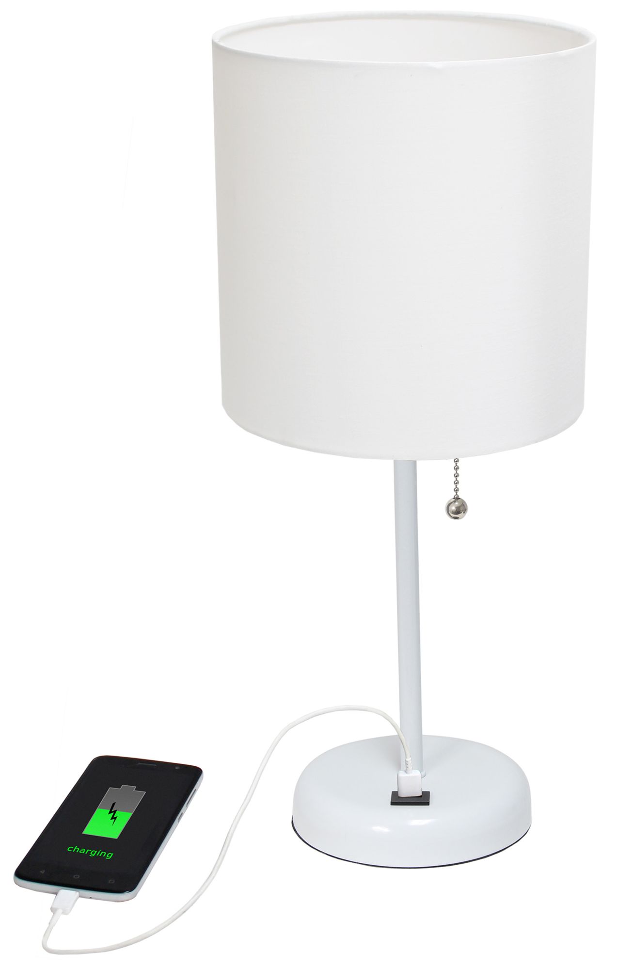 19.5" White Stick Table Lamp with USB Charging Port and LED Bulb Inclu