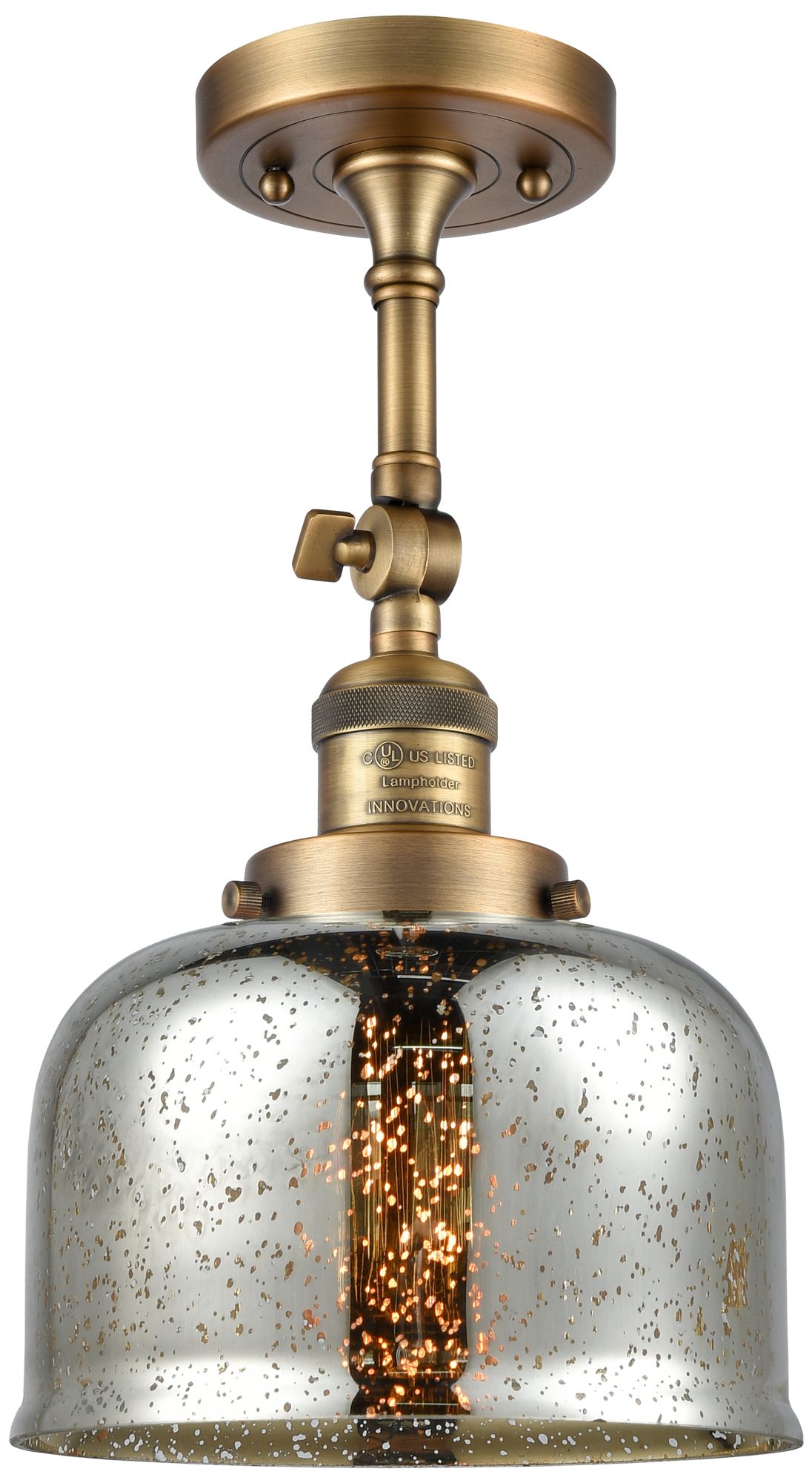 Franklin Restoration Bell 8" Brushed Brass Semi Flush w/ Mercury Shade