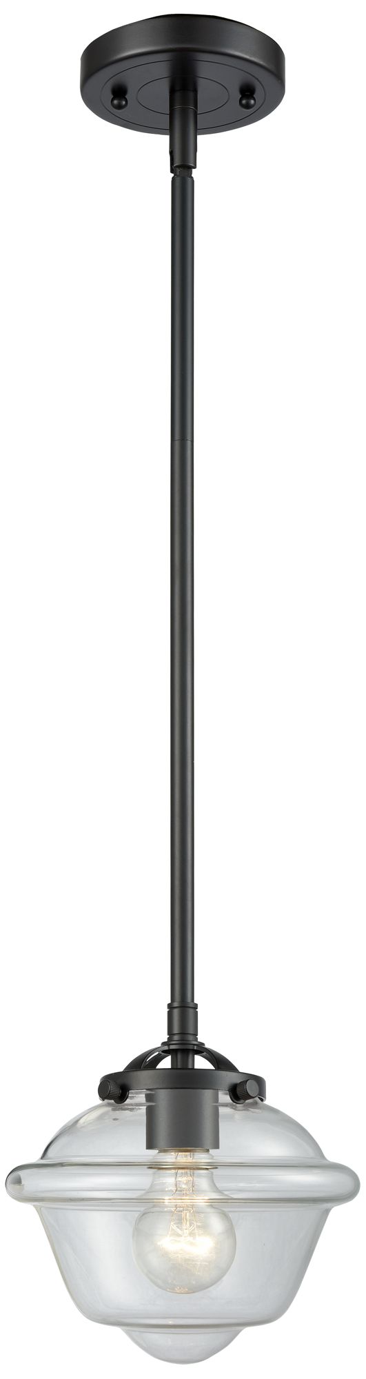 Nouveau Oxford 7.5" Wide Bronze Stem Hung Mini Pendant w/ Clear Shade
