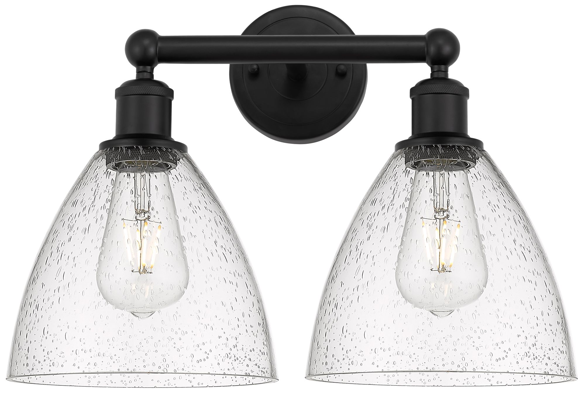 Bristol Glass 17" 2-Light Matte Black Bath Light w/ Seedy Shade