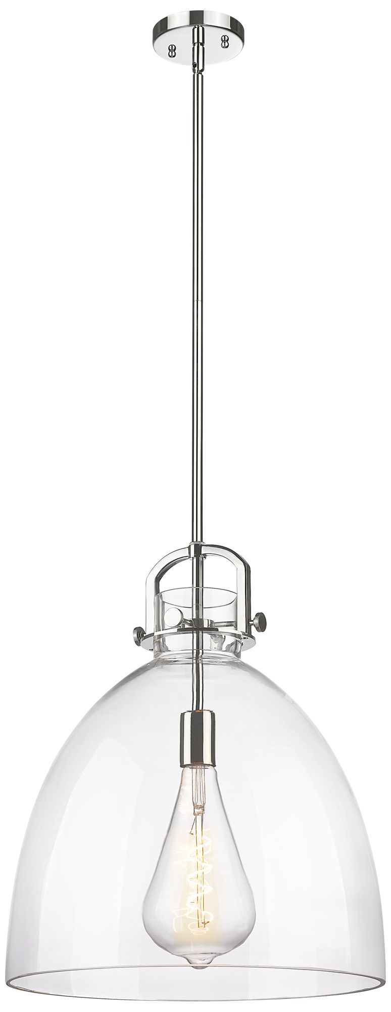 Newton Bell 16" Wide Stem Hung Polished Nickel Pendant With Clear Shad
