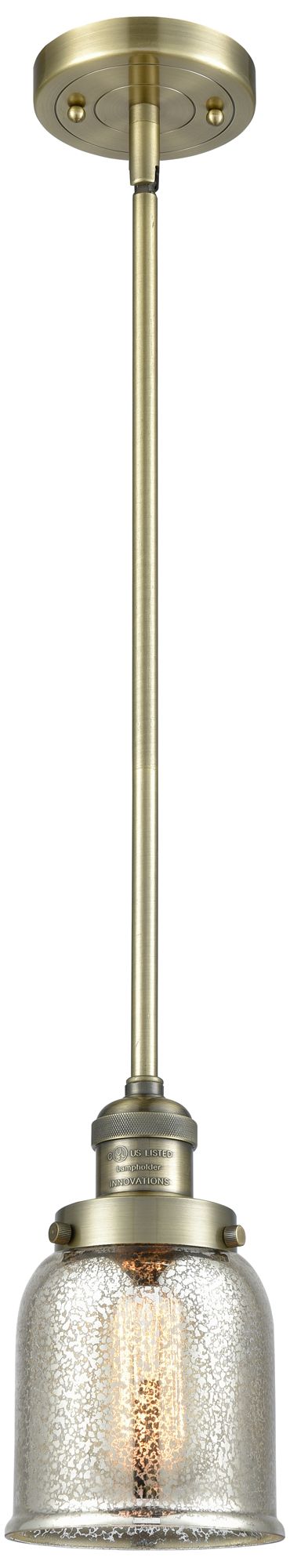 Franklin Restoration Small Bell 5" Brass Mini Pendant w/ Mercury Shade