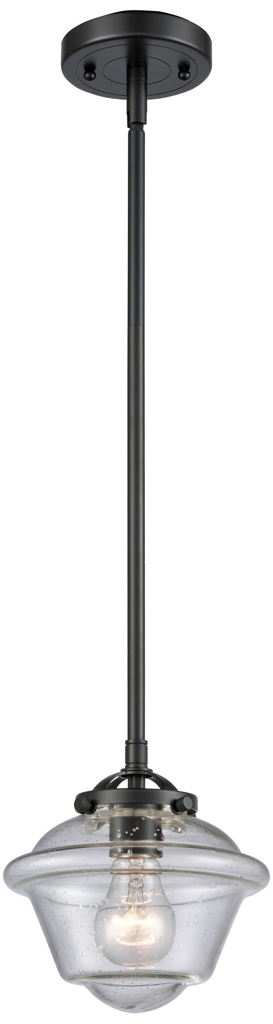 Nouveau Oxford 7.5" Wide Bronze Stem Hung Mini Pendant w/ Seedy Shade