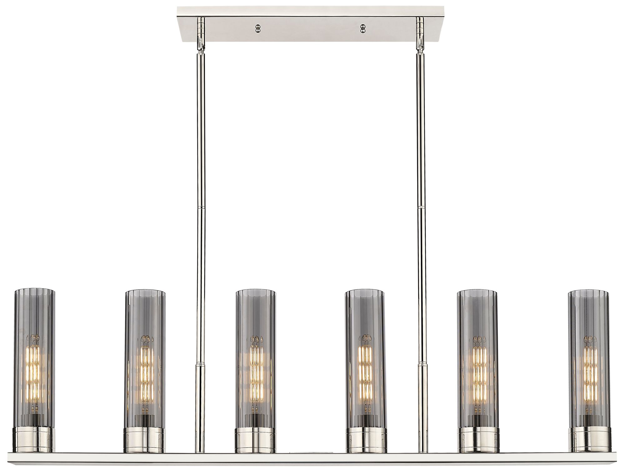 Empire 44.25"W 6 Light Polished Nickel Stem Linear Pendant w/ Smoke Sh