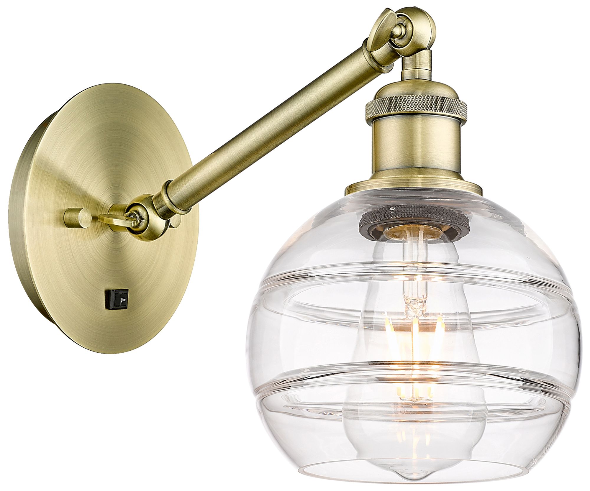 Ballston Rochester 7.88"H Antique Brass Adjustable Sconce w/ Clear Sha