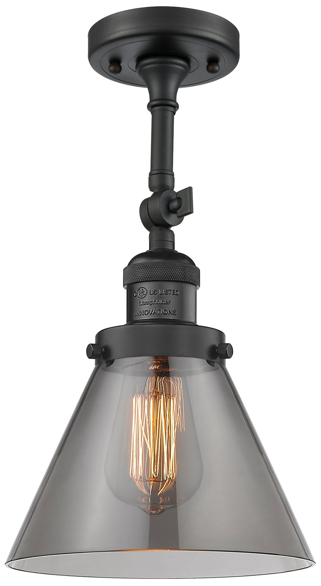 Franklin Restoration Cone 8" Matte Black Semi Flush Mount w/ Smoke Sha