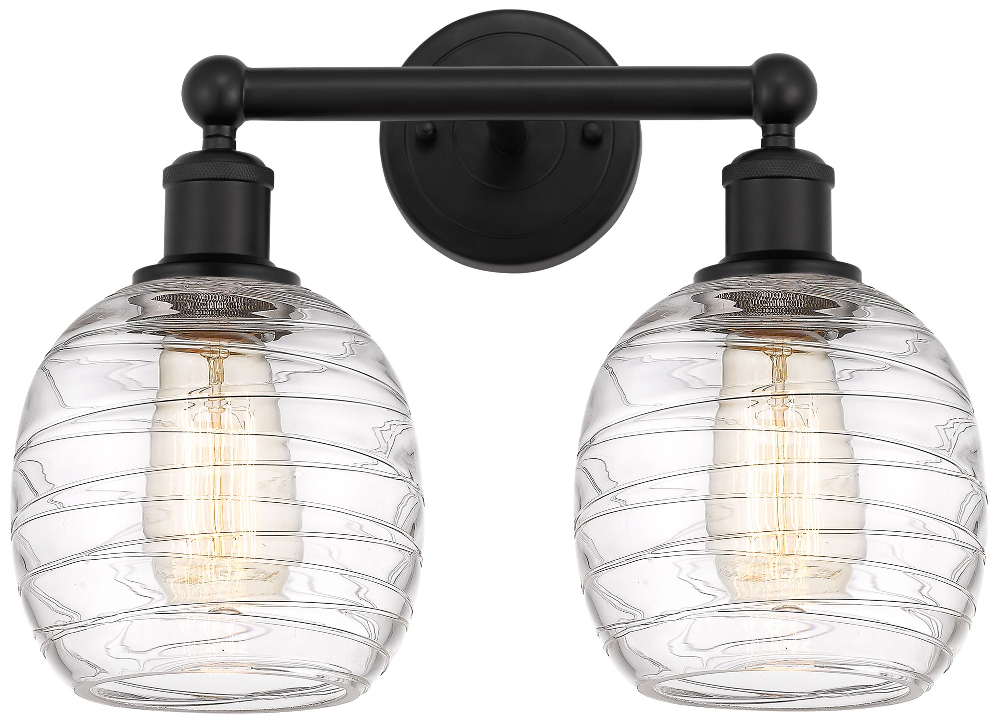 Belfast 15" 2-Light Matte Black Bath Light w/ Deco Swirl Shade