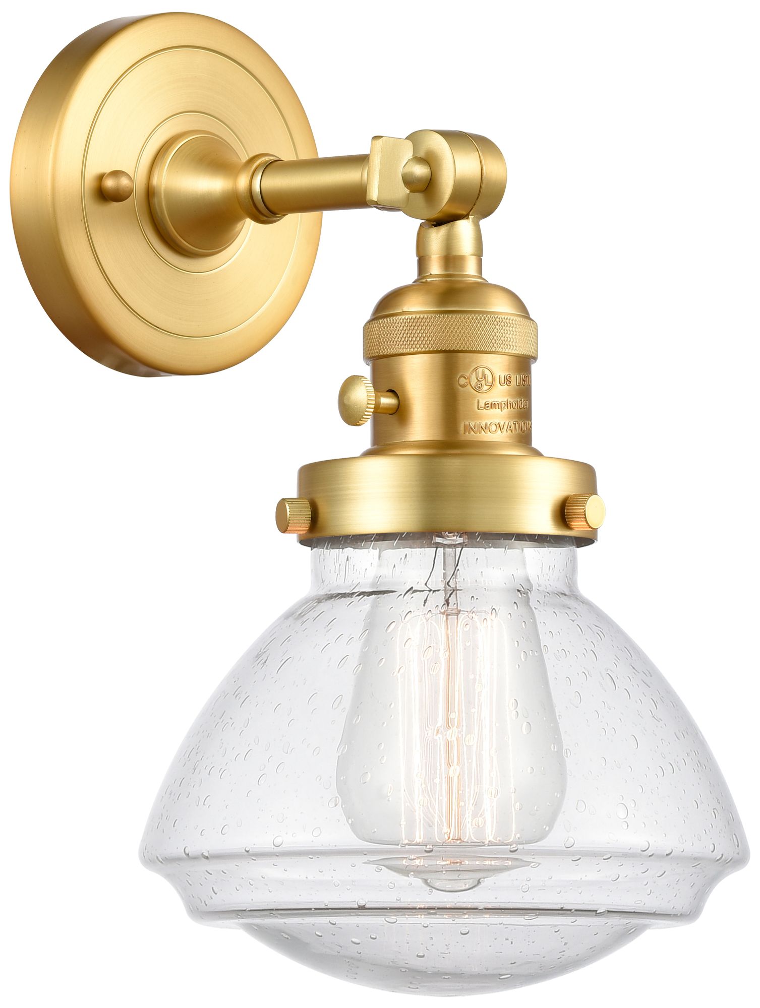 Olean 7.75" High Satin Gold Sconce w/ Seedy Shade