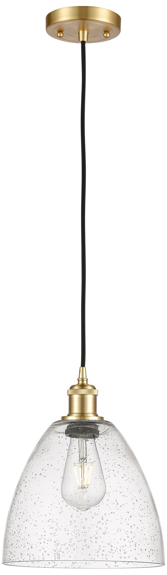 Ballston Bristol Glass 9" LED Mini Pendant - Satin Gold - Seedy Shade