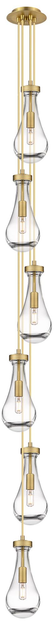 Malone 7.13"W 6 Light Brushed Brass Multi Pendant w/ Striped Clear Sha