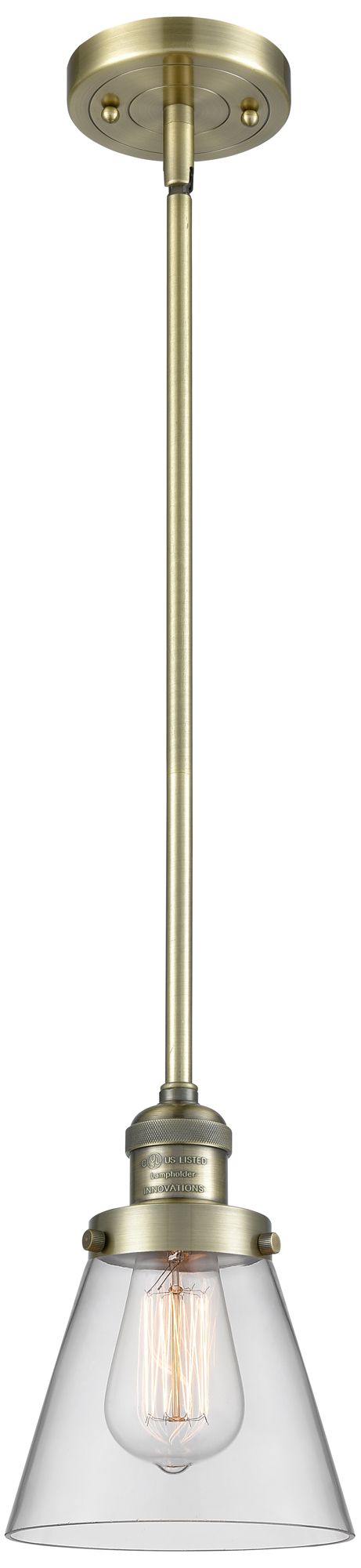 Franklin Restoration Cone 6" Brass Stemmed Mini Pendant w/ Clear Shade