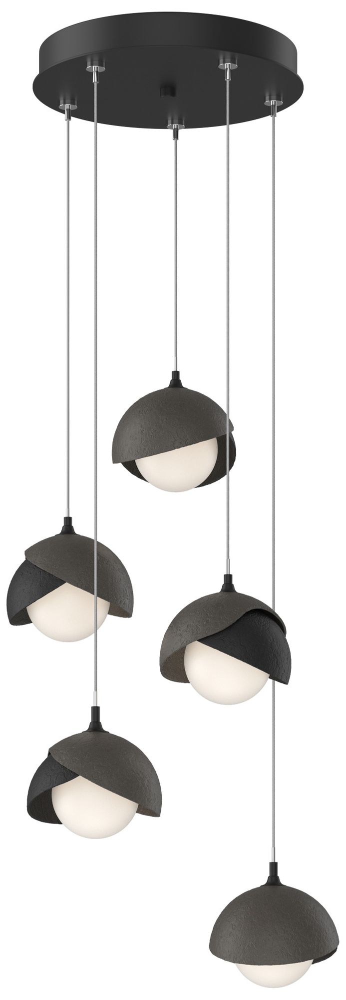 Brooklyn 16"W 5-Light Dark Smoke Accented Black Long Double Shade Pend