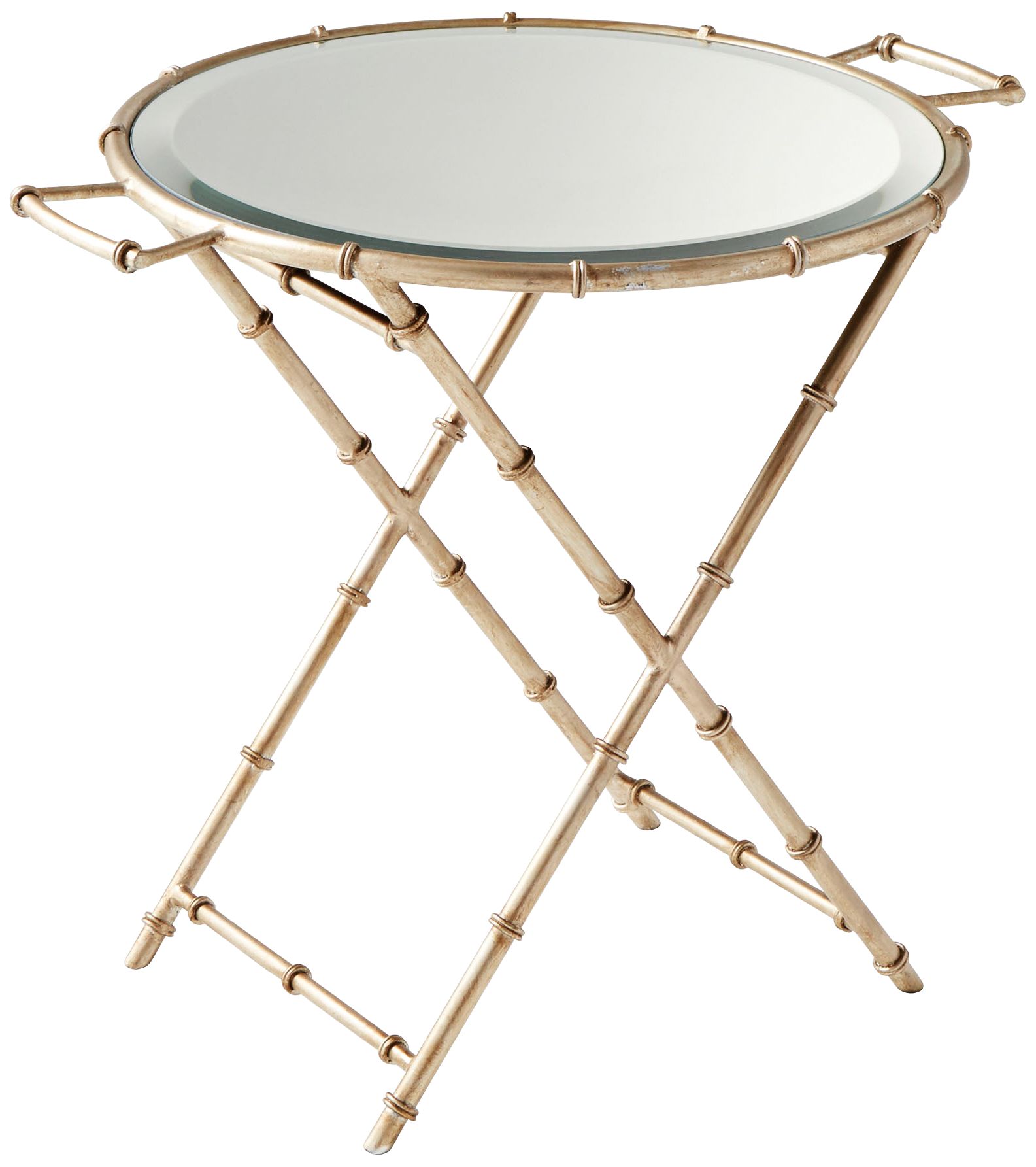 Amelia 25" Wide Glass and Antique Silver Tray Table