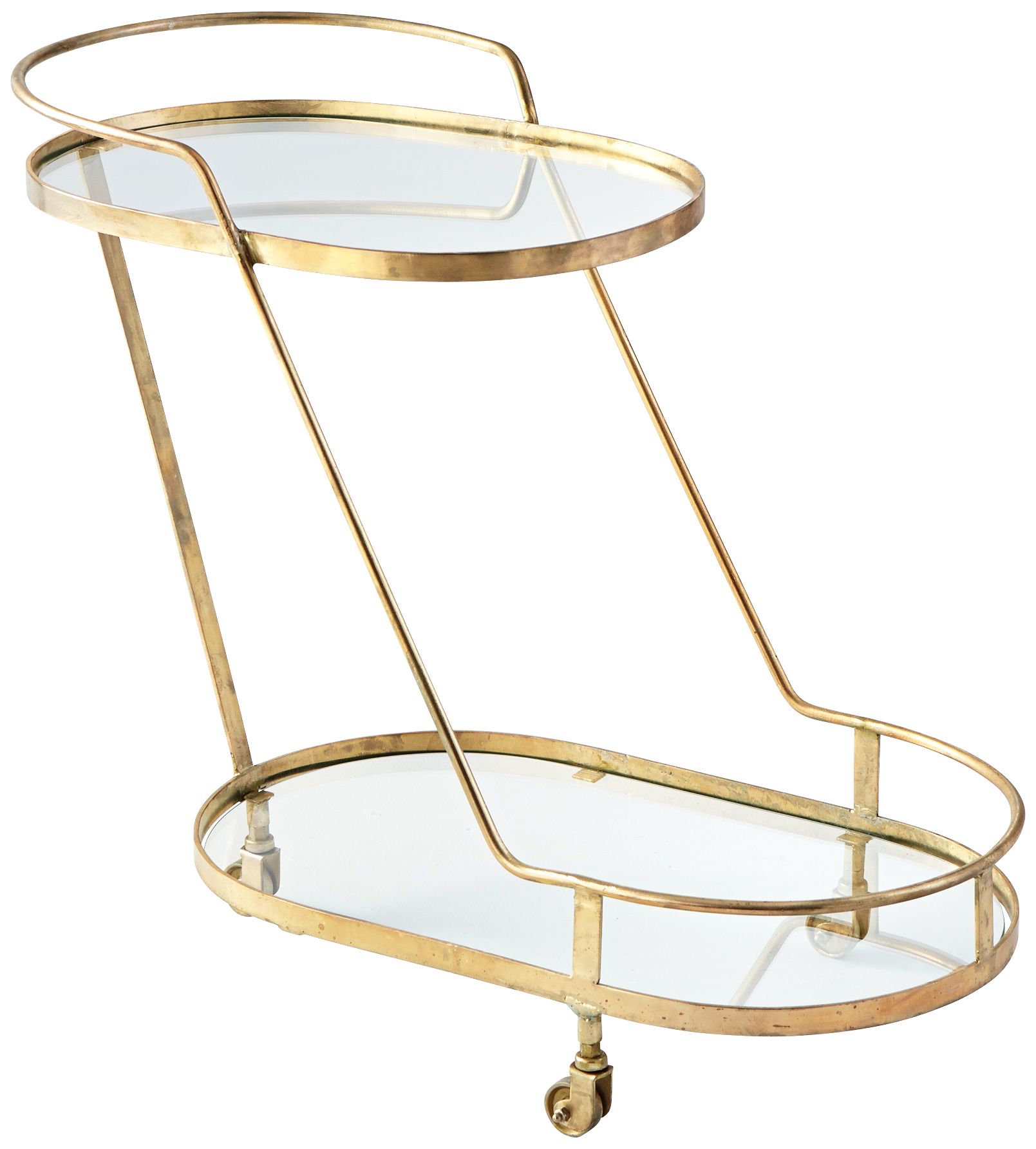Patin 36" Wide Brass and Glass Wheeled Bar Cart
