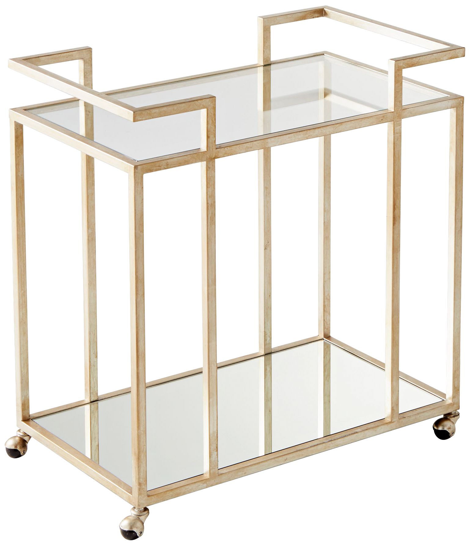 Revival 31 1/2" Wide Antique Silver and Glass Bar Cart