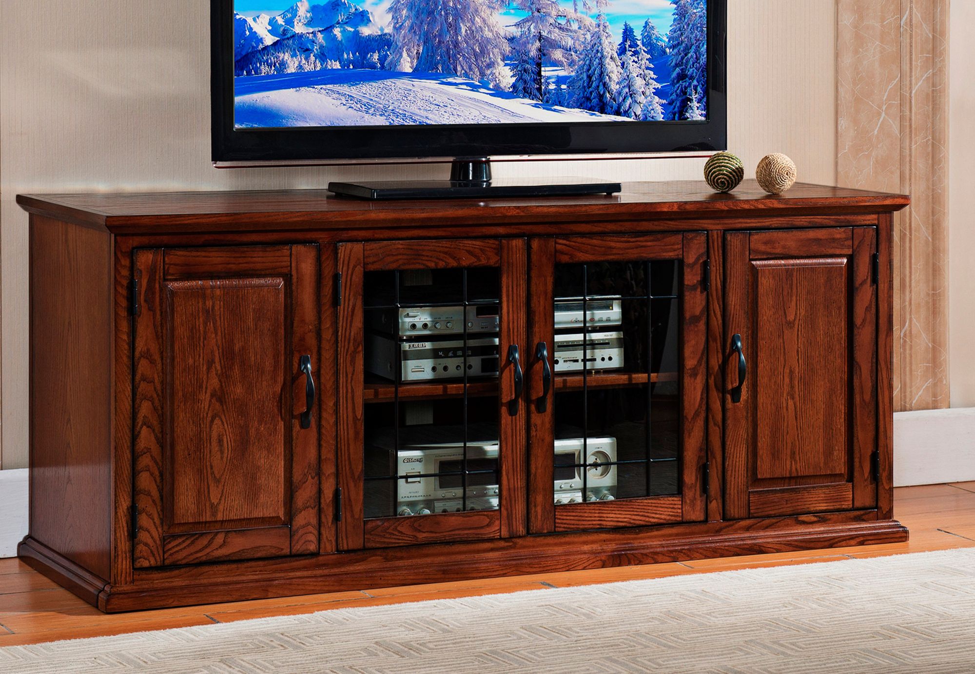 Leick 60" Wide Burnished Oak 4-Door TV Stand Cabinet