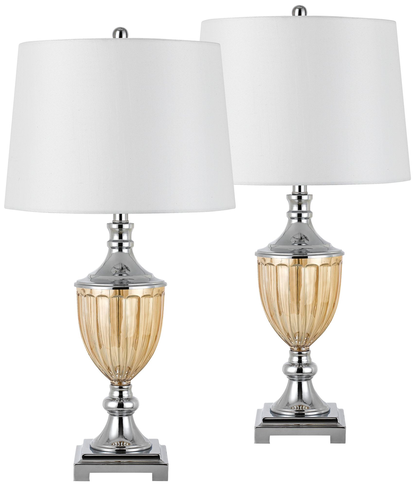 Cal Lighting Derby 28 1/2" Silver and Amber Glass Table Lamp Set of 2
