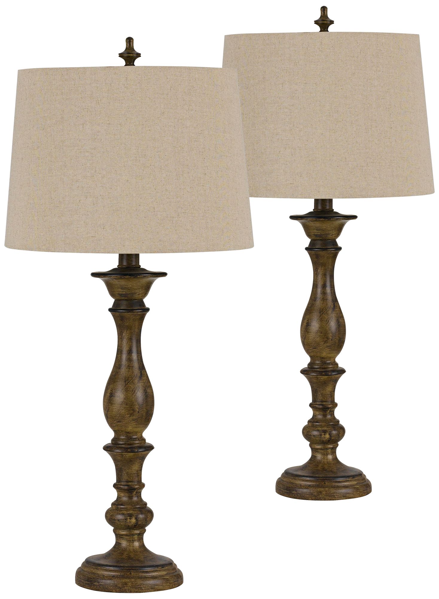 Harrow Walnut Woodgrain Candlestick Table Lamp Set of 2