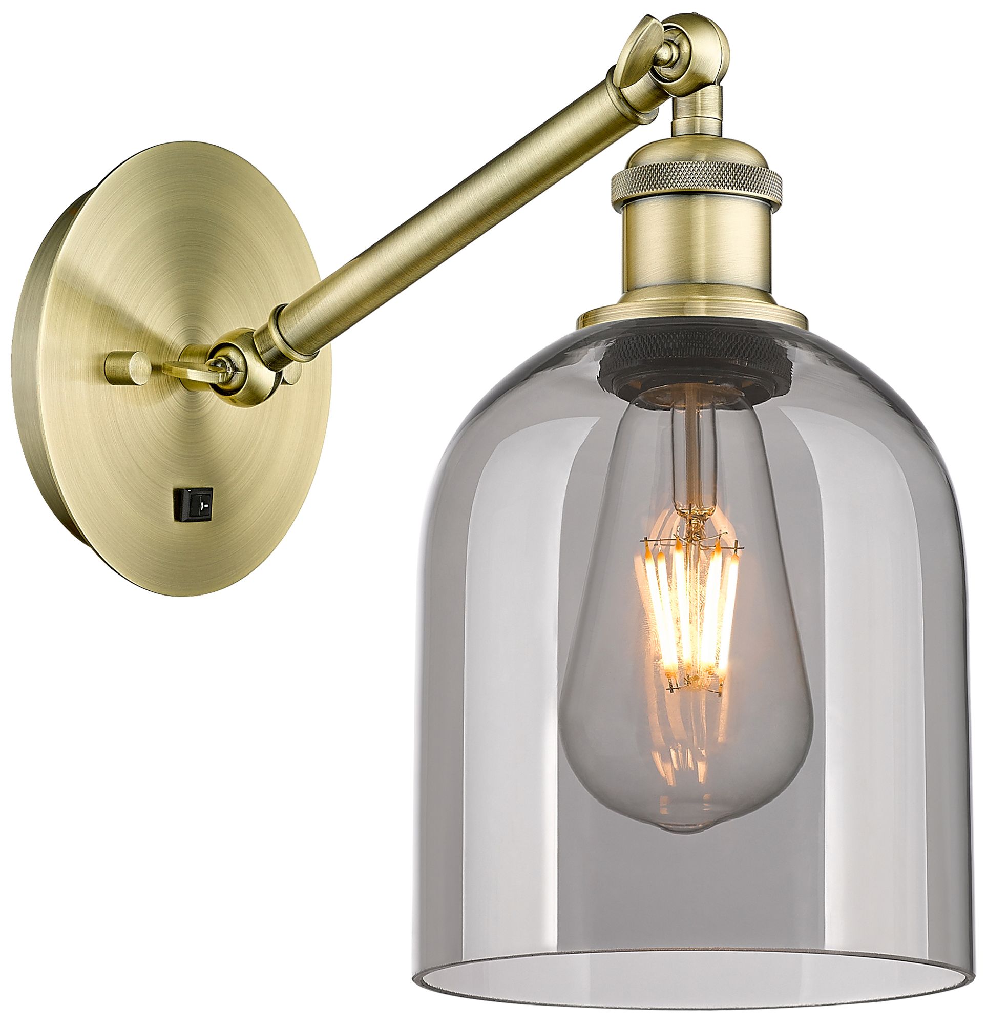 Ballston Bella 9.5"H Antique Brass Adjustable Sconce w/ Smoke Shade
