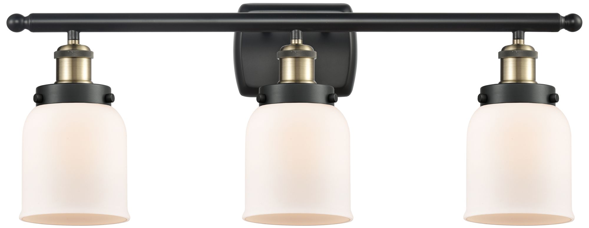 Ballston Urban Bell 5" 3 Light 26" Bath Light - Black Brass - Whi