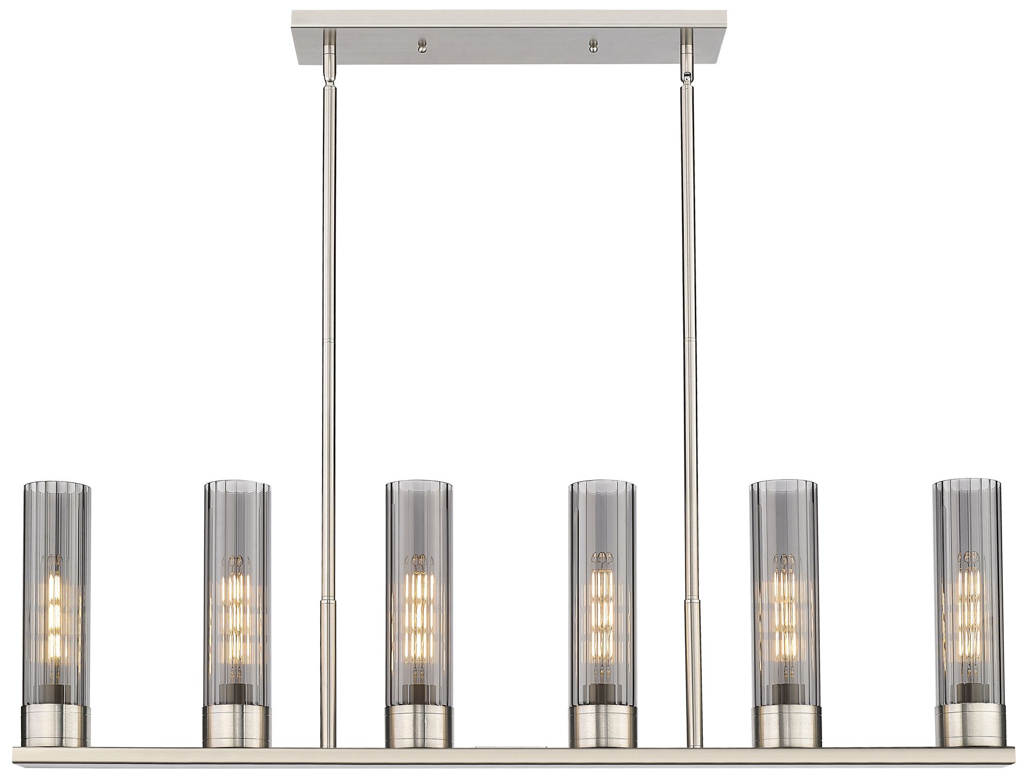 Empire 44.25"W 6 Light Satin Nickel Stemmed Linear Pendant w/ Smoke Sh