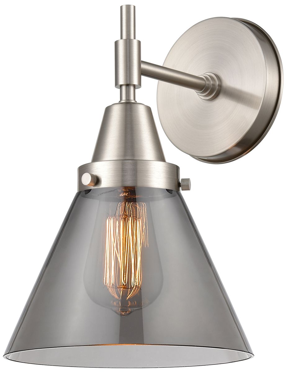 Caden Cone 11.25" High Satin Nickel Sconce w/ Plated Smoke Shade