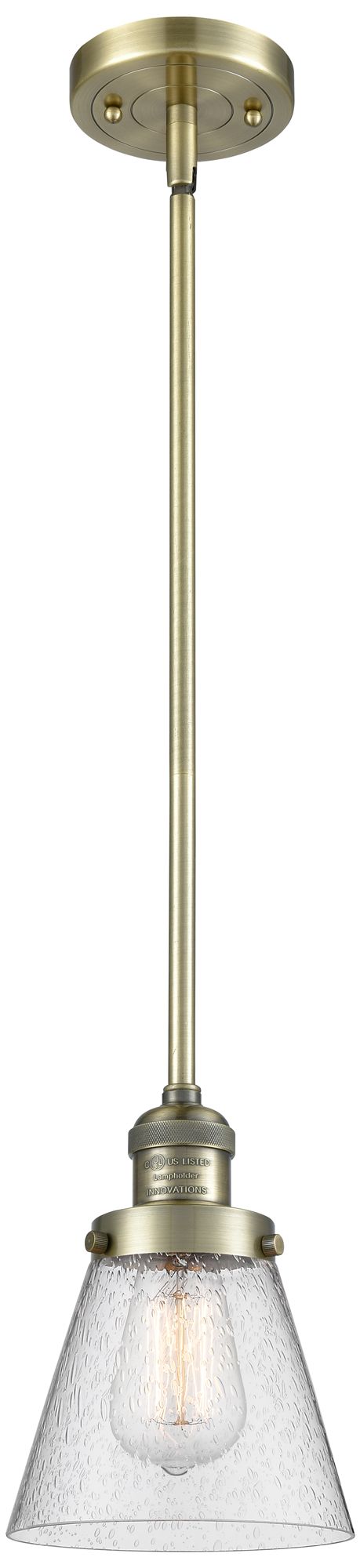 Franklin Restoration Cone 6" Brass Stemmed Mini Pendant w/ Seedy Shade