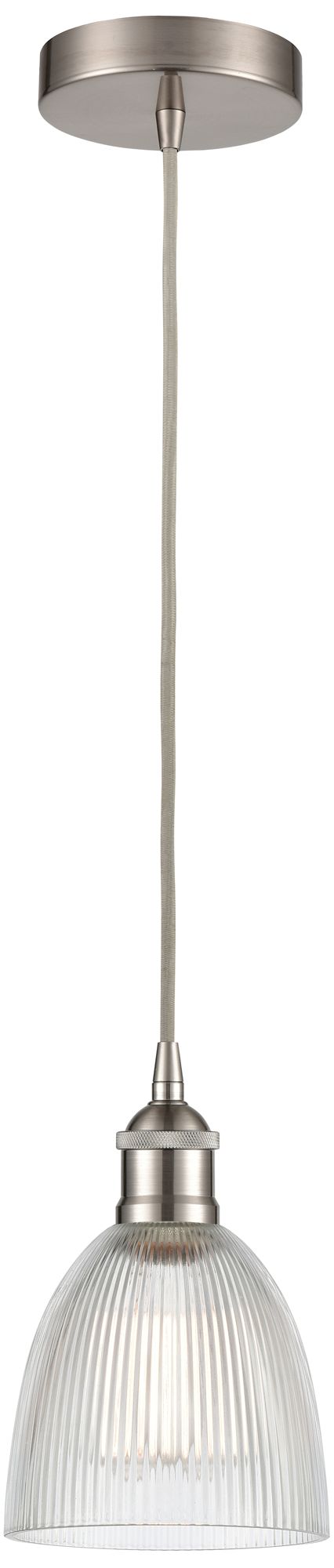 Edison Castile 6" Brushed Satin Nickel Corded Mini Pendant w/ Clear Sh