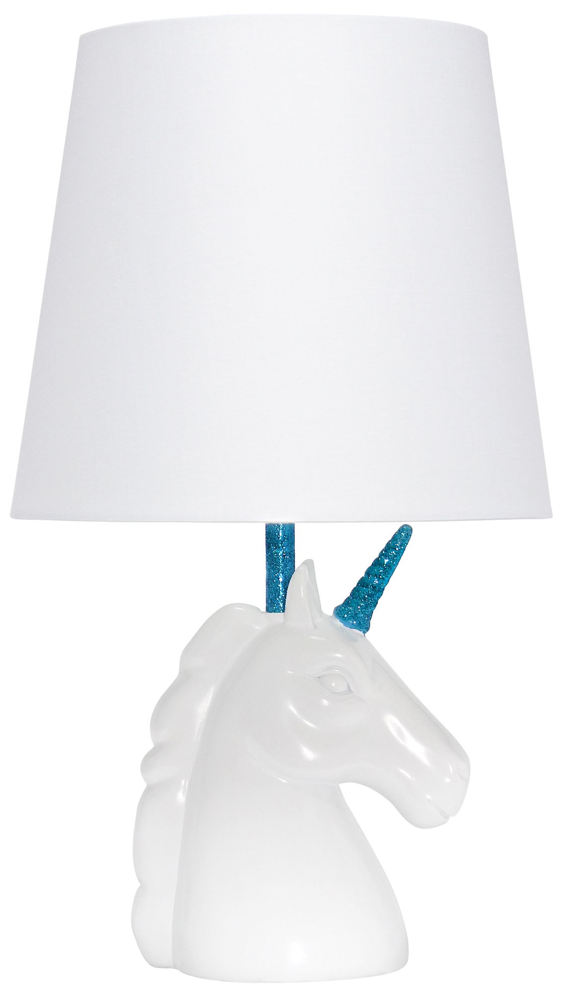 Simple Designs 15.5" Unicorn Lamp, White & Blue Glitter, w/ LED Bu