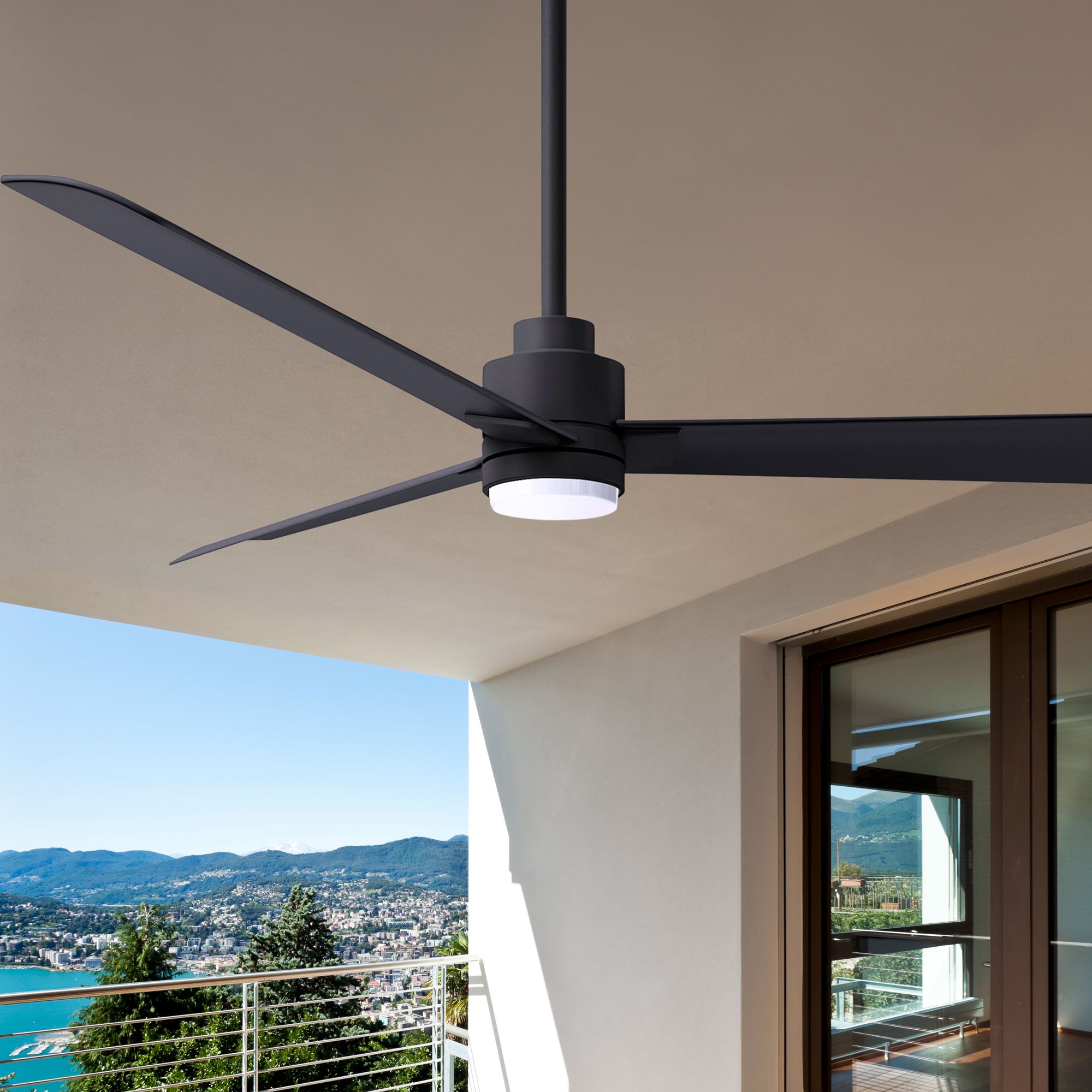 56" Matthews Alessandra Damp LED Matte Black Ceiling Fan with Remote