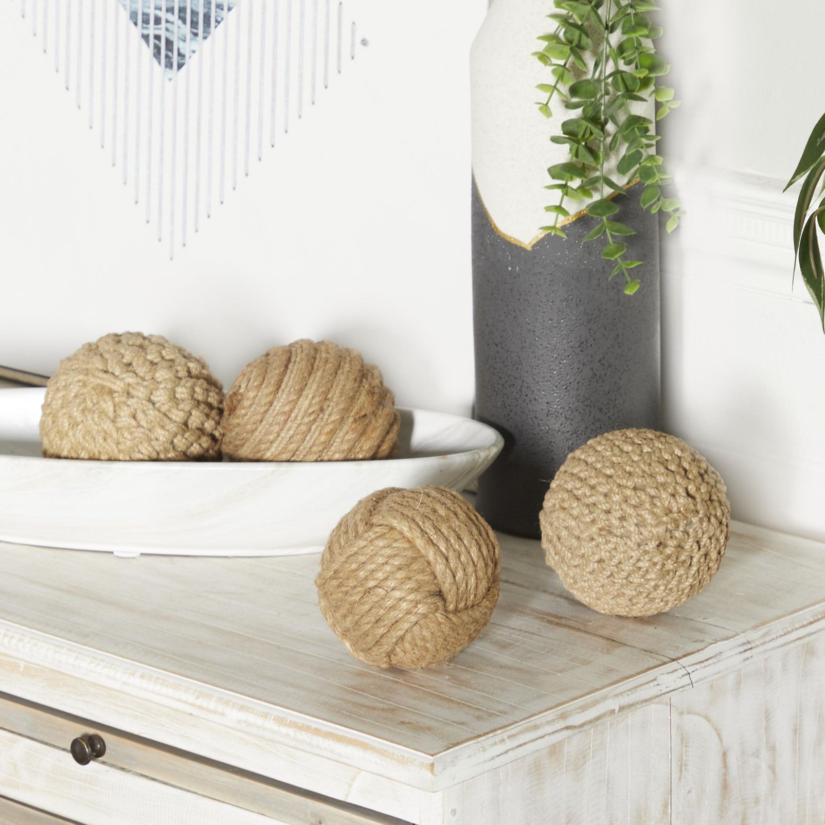 Brown Jute Rope Coastal Orbs & Vase Filler, S/4 4"W, 4"H