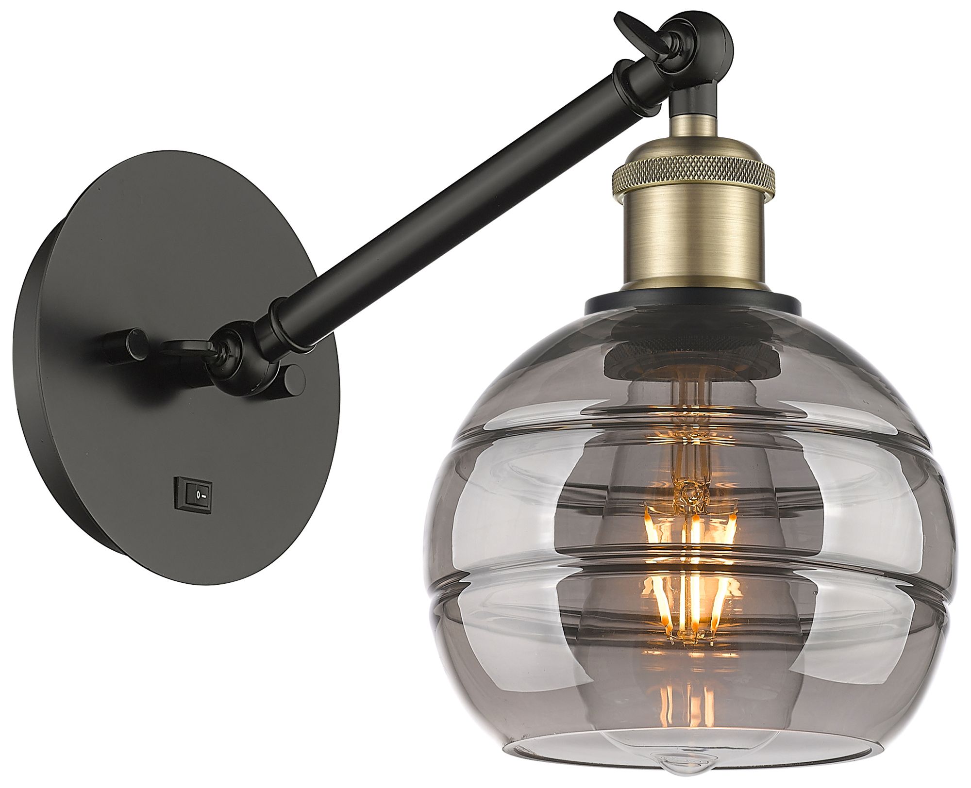 Ballston Rochester 7.88"H Black Brass Adjustable Sconce w/ Smoke Shade
