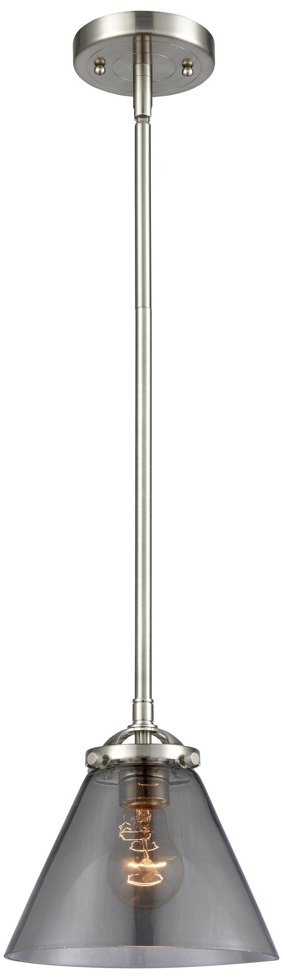 Nouveau Cone 7.75"W Brushed Nickel Stem Hung Mini Pendant w/ Smoke Sha