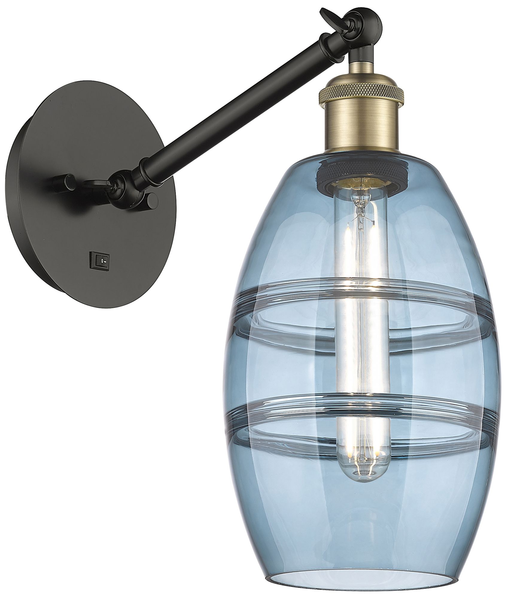 Ballston Vaz 8.13"H Black Brass Vertically Adjustable Sconce w/ Blue S