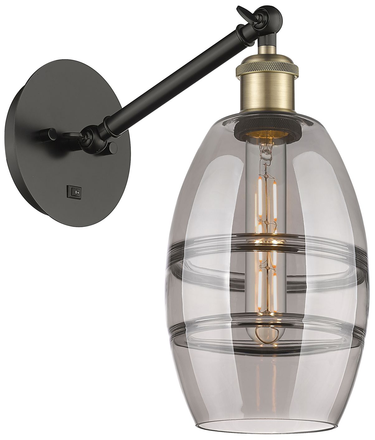 Ballston Vaz 8.13"H Black Brass Vertically Adjustable Sconce w/ Smoke