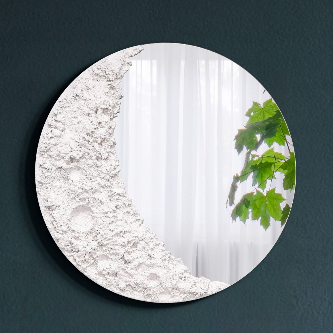 Lunar Serenity" 20" Round Wall Mirror with 3D Textured Moon Embel