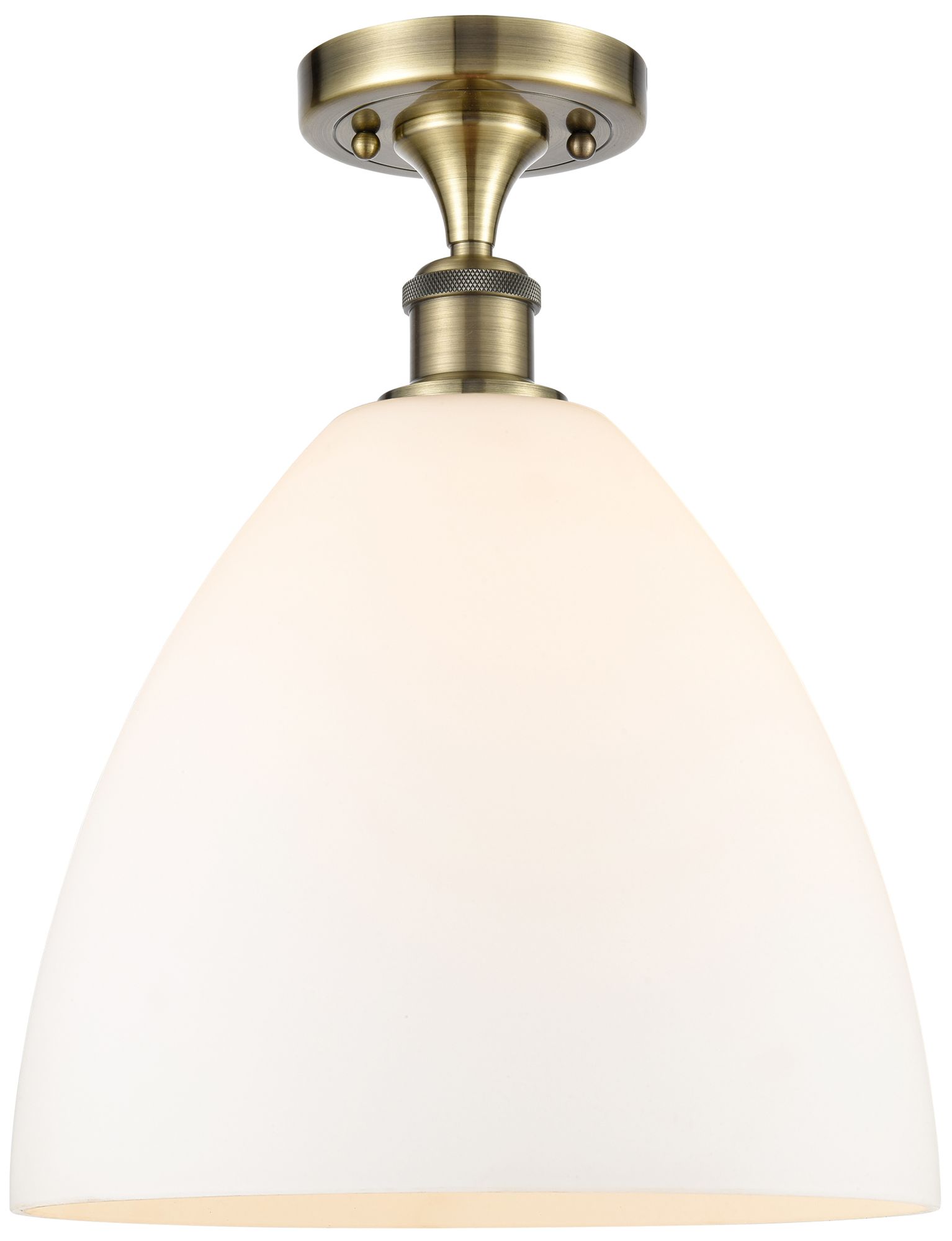 Bristol Glass 12" LED Semi-Flush Mount - Antique Brass - Matte White