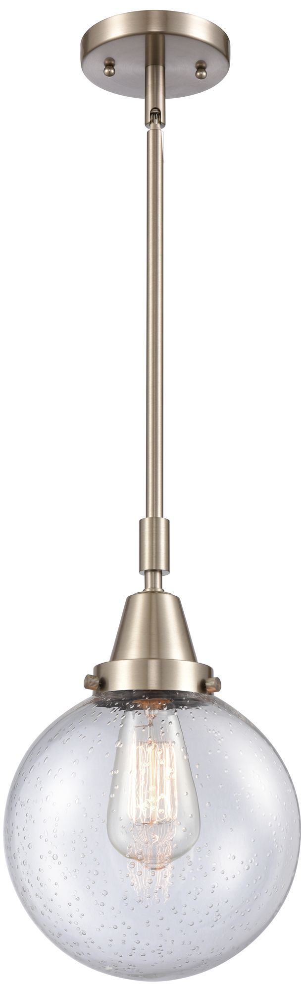Caden Beacon 8"W Brushed Satin Nickel Stem Hung Mini Pendant w/ Seedy
