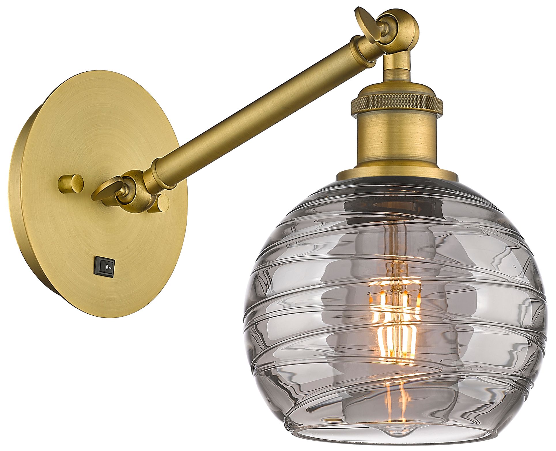 Ballston Athens 8.13"H Brushed Brass Adjustable Sconce w/ Smoke Swirl