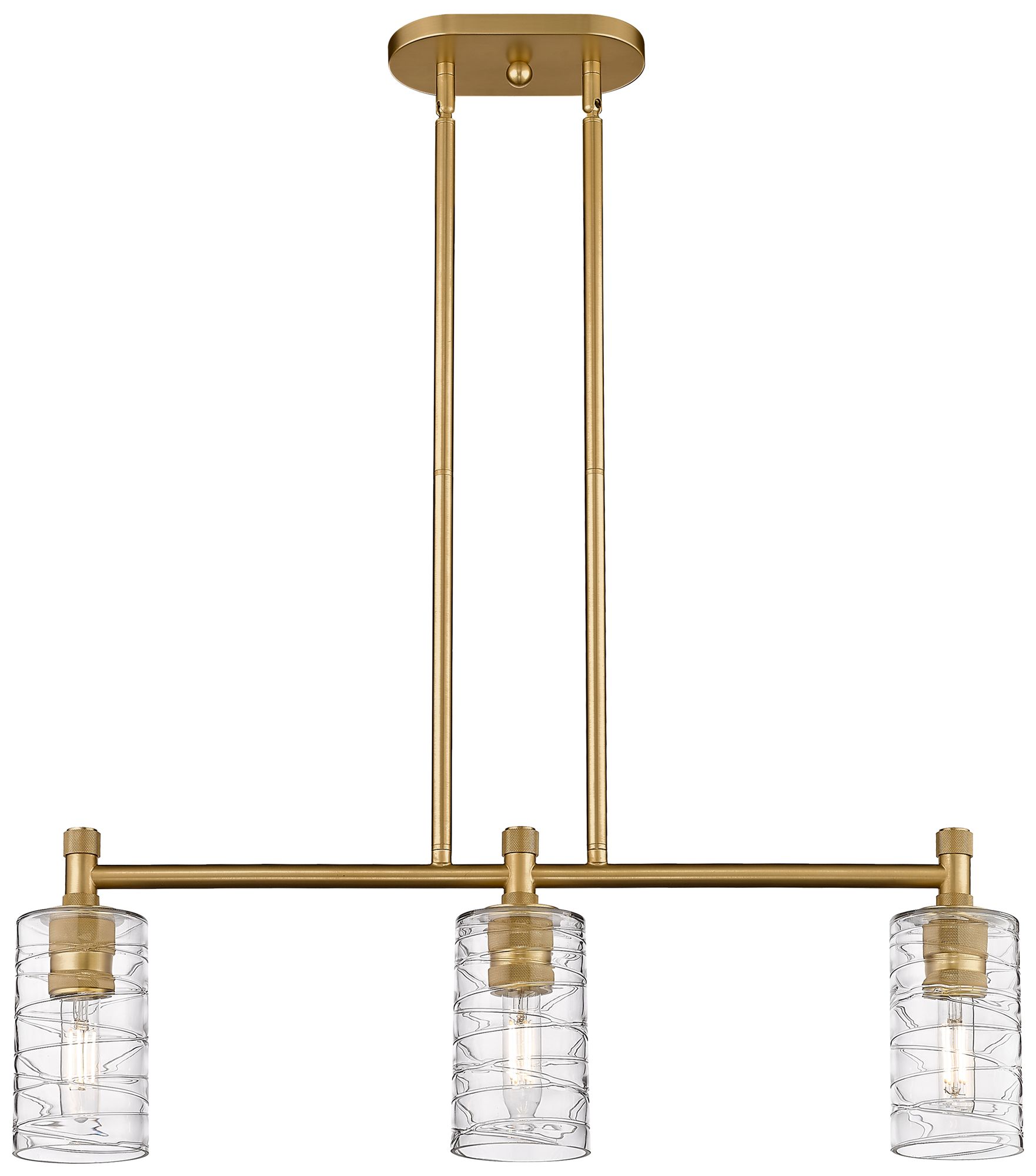 Crown Point 30.5"W 3 Light Brushed Brass Stem Island Light w/ Swirl Sh