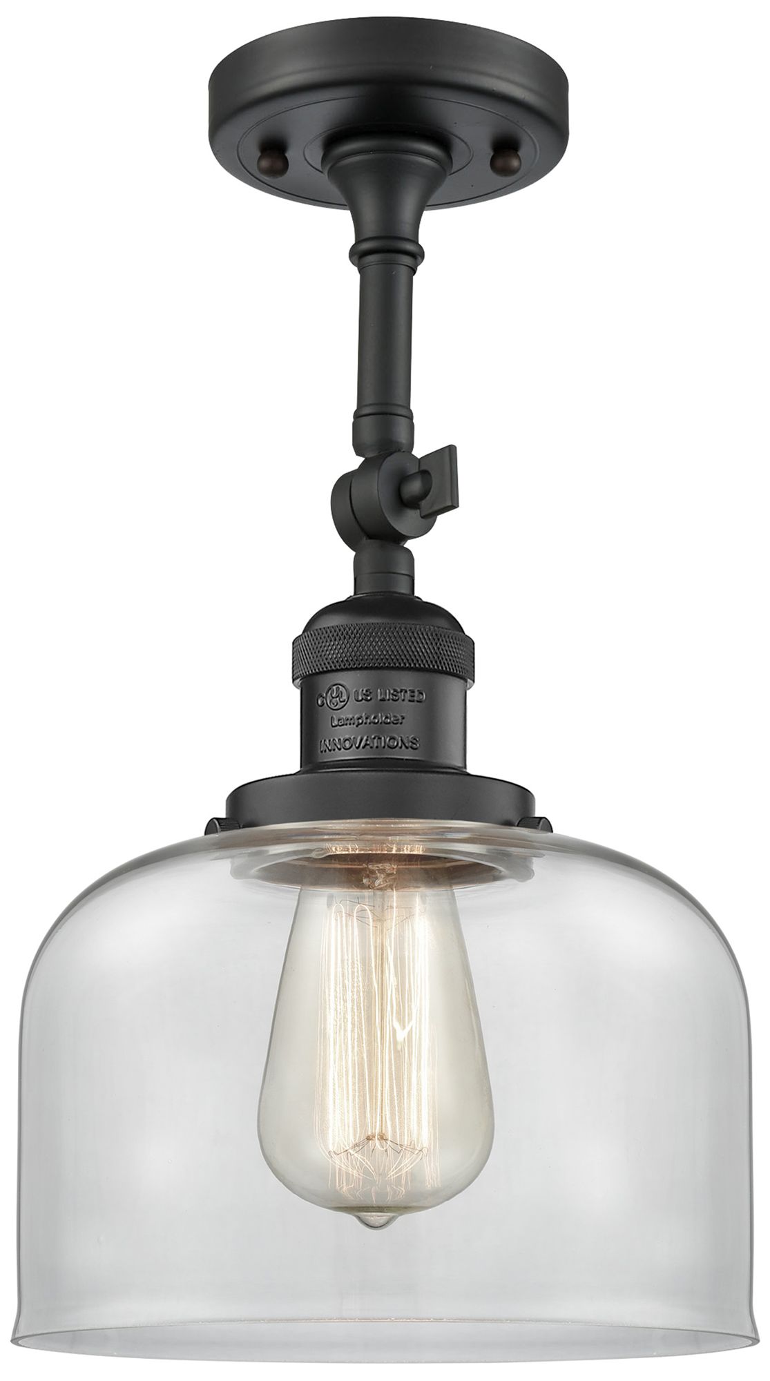 Franklin Restoration Bell 8" Matte Black Semi Flush Mount w/ Clear Sha