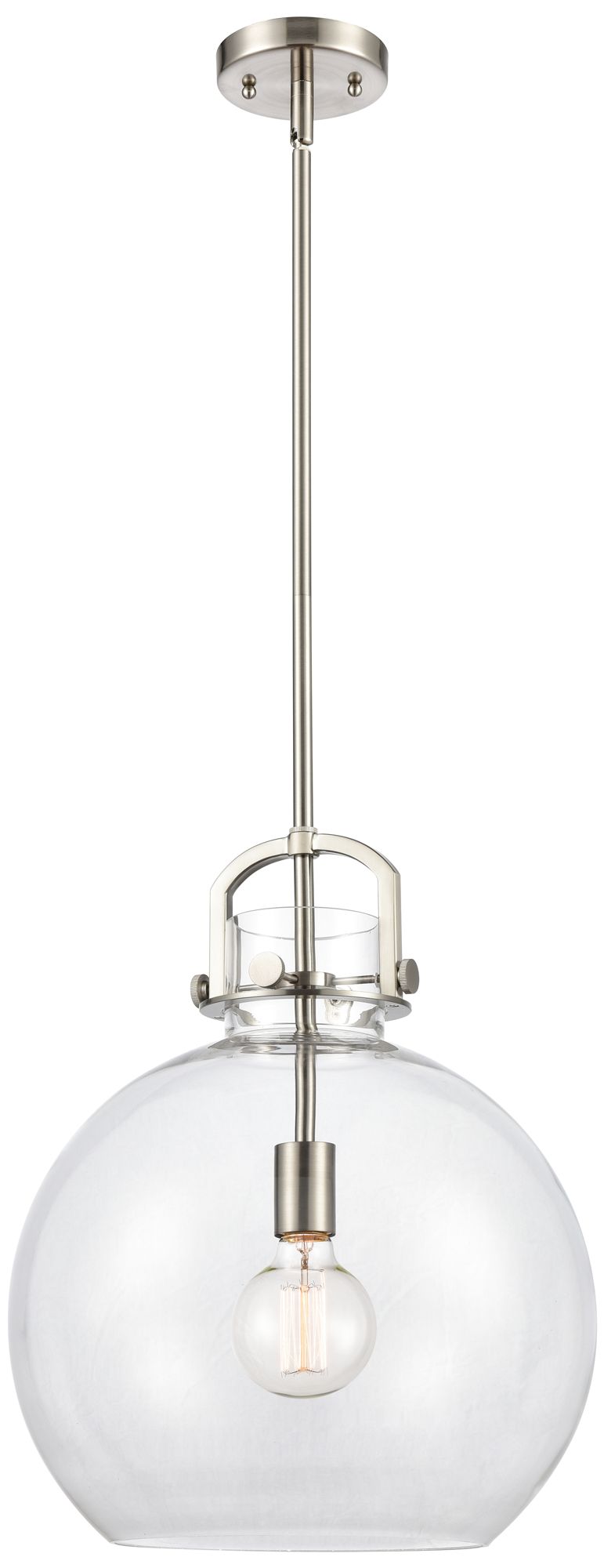 Newton Sphere 14" Wide Stem Hung Satin Nickel Pendant With Clear Shade