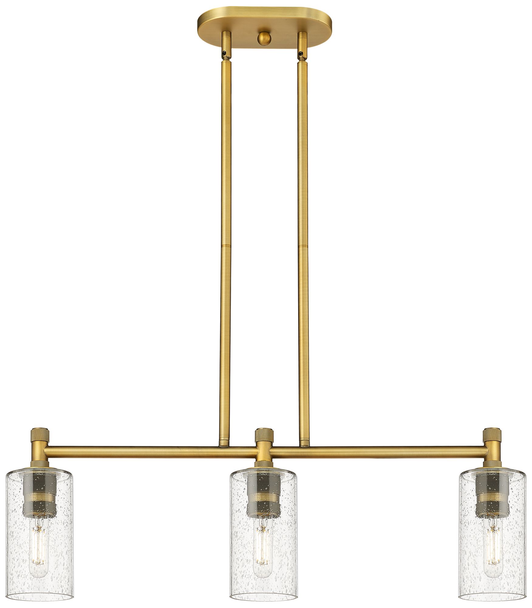 Crown Point 30.5"W 3 Light Brushed Brass Stem Island Light w/ Seedy Sh