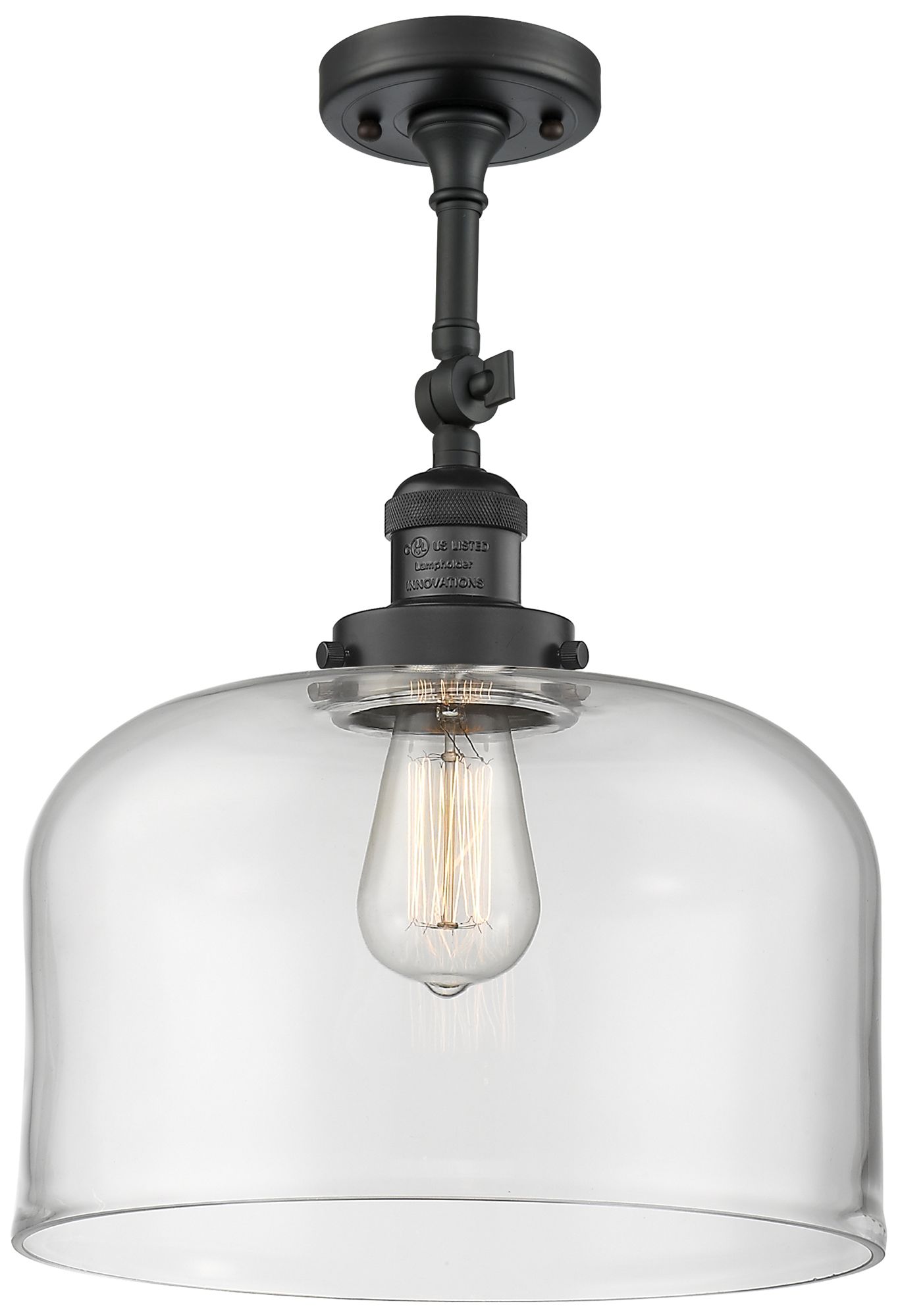 Franklin Restoration Bell 12" Matte Black Semi Flush Mount w/ Clear Sh