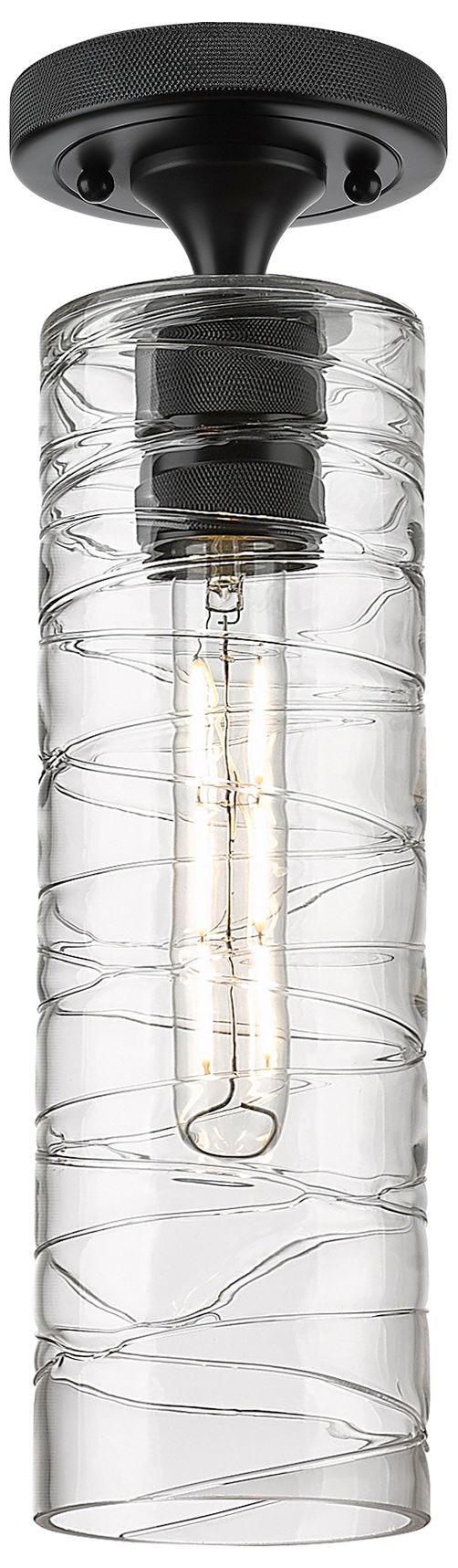 Crown Point 3.88" Wide Matte Black Flush Mount With Deco Swirl Glass S