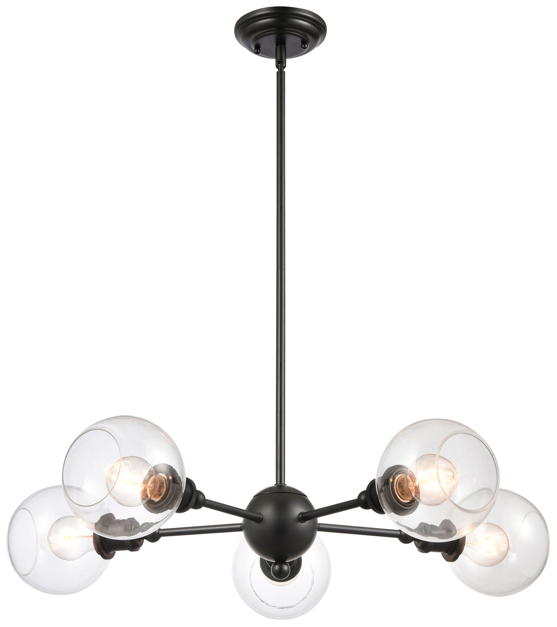 Concord 30" 5-Light Matte Black Stem Hung Chandelier w/ Clear Shade