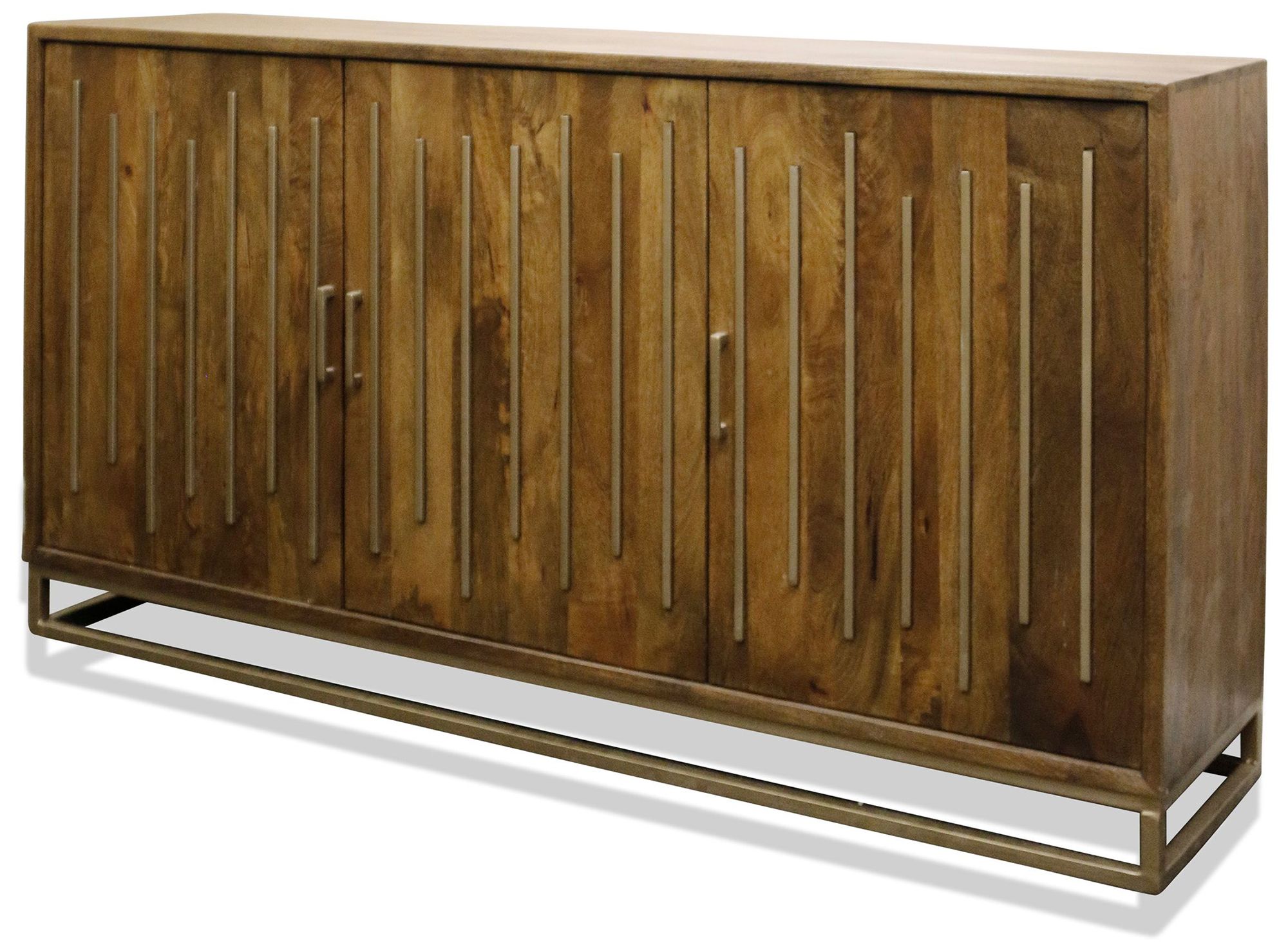 Thackary 72" Wide Walnut Mango Wood and Metal Three Door Sideboard