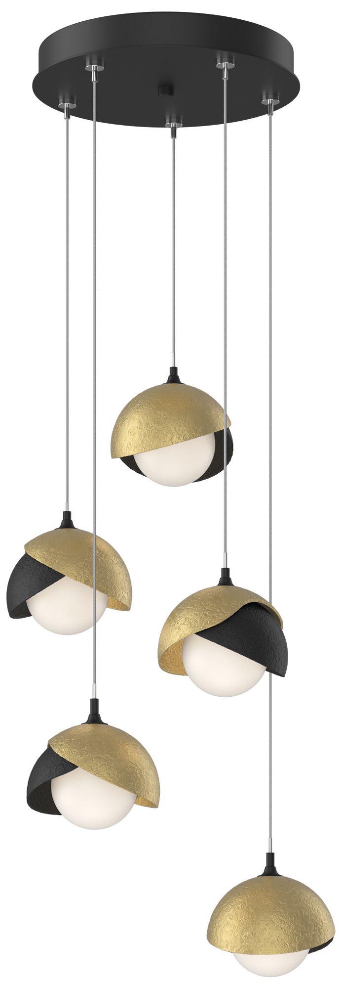 Brooklyn 16"W 5-Light Modern Brass Accented Black Long Double Shade Pe